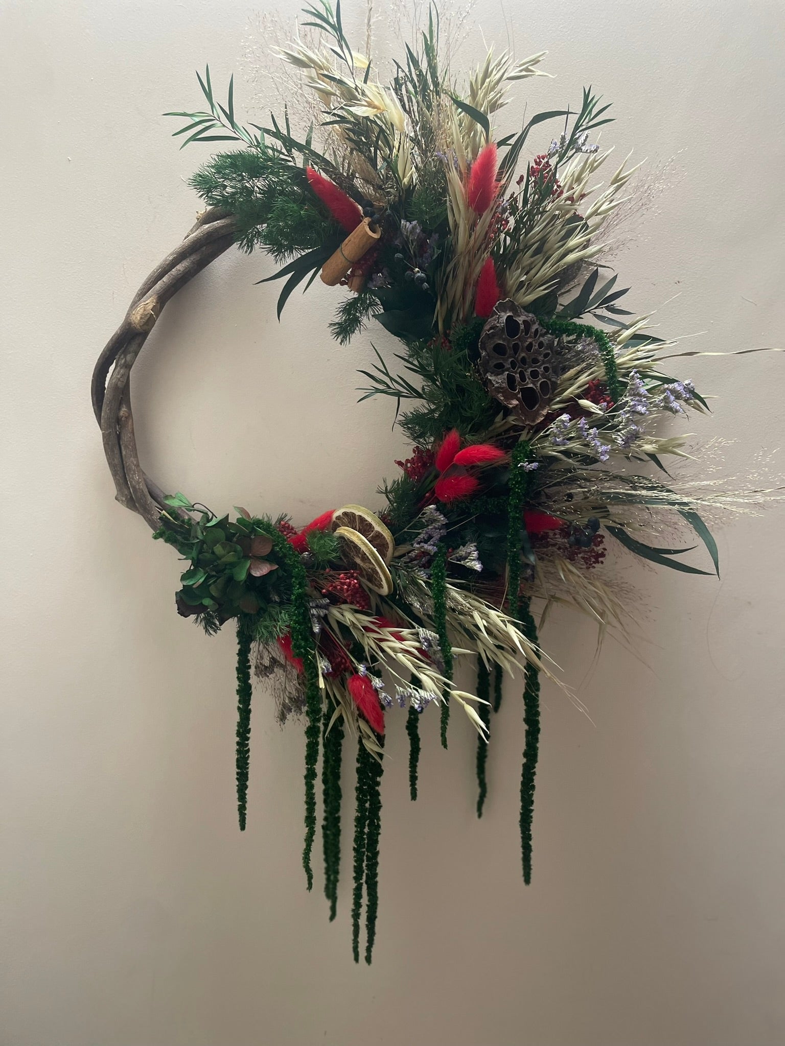 Luxury Amaranthus and Hydrangea Christmas Wreath - I will be making a limited number of this design using a mixed of high quality flower stems listed below. Due to the nature of Amaranthus draping being unique, I will be added it in the design in different positions each time.